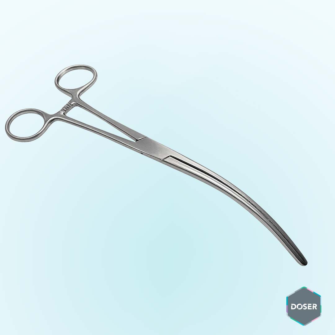 La Pinza Kocher Curva es una herramienta quirúrgica diseñada para sujetar firmemente tejidos densos y estructuras resistentes durante procedimientos de embalsamamiento o intervención post mortem. Su diseño con dientes en la punta y forma curva ofrece un agarre firme y seguro, ideal para maniobras de exposición, tracción o separación de tejidos durante la disección.